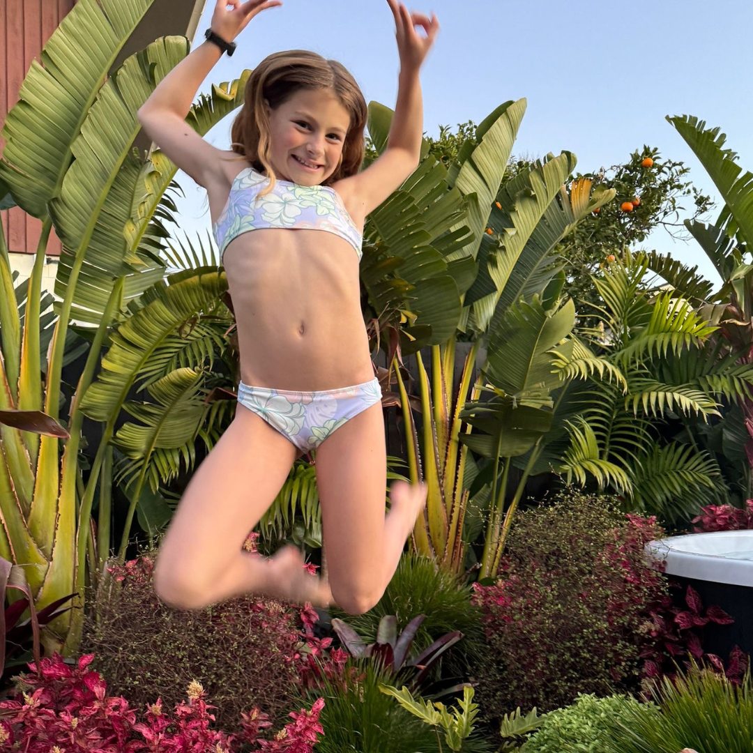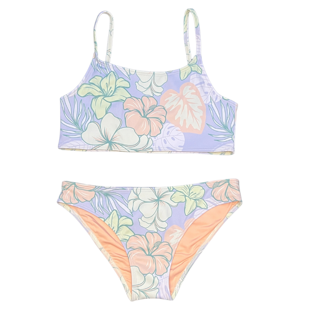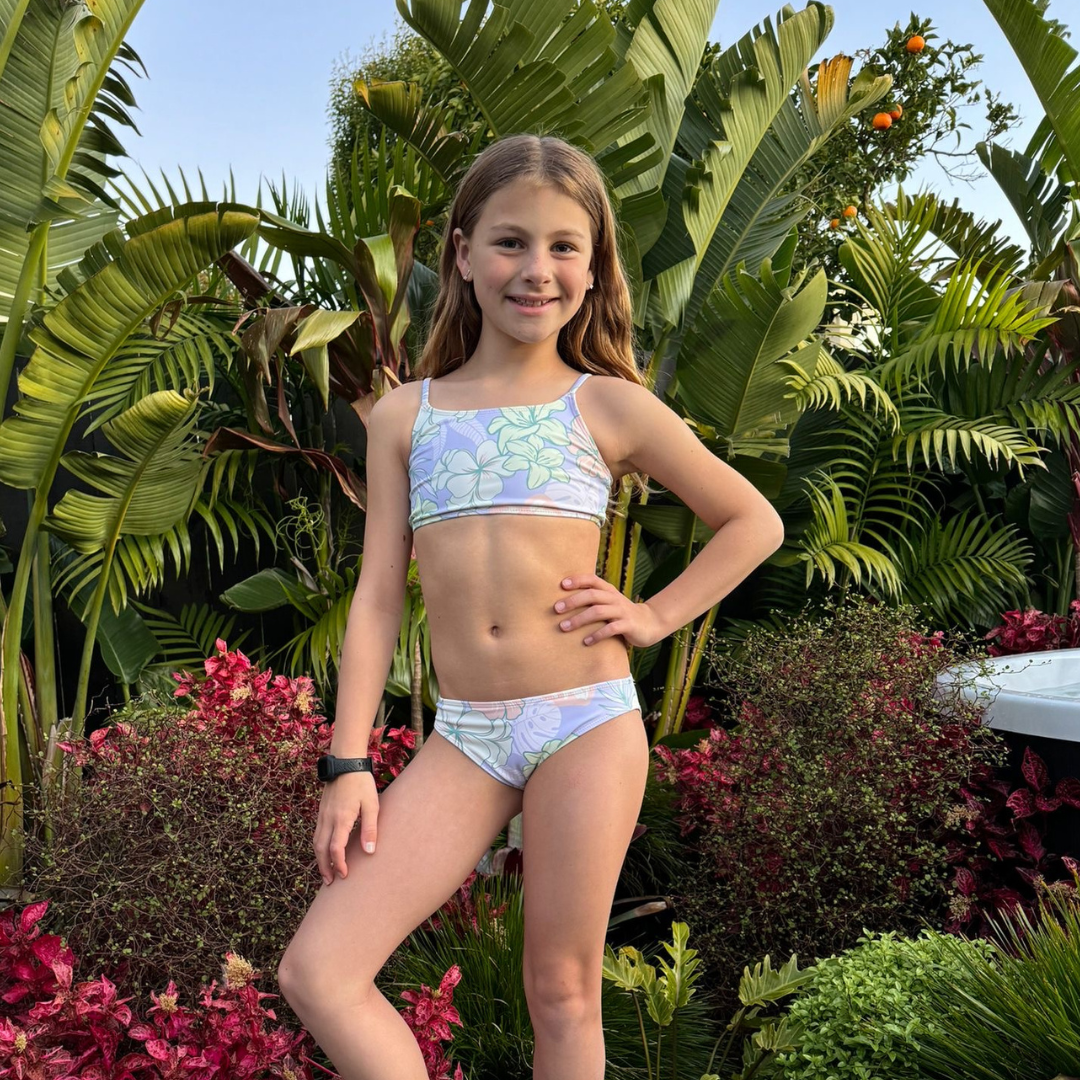 Living in lilac! This gorgeous girls two piece bikini is made using recycled material and has double lining in the body to create the softest feel of swimwear.