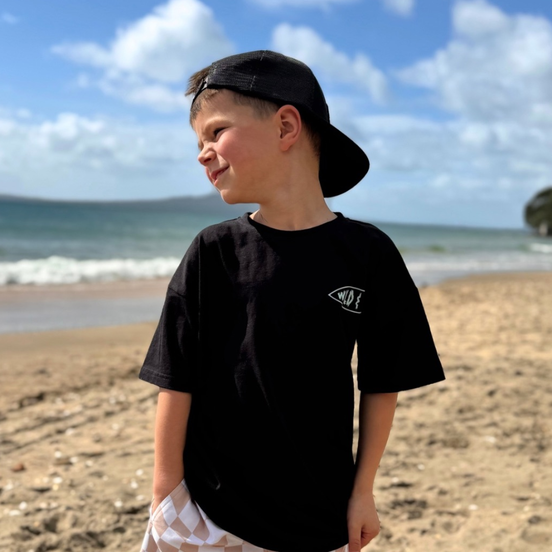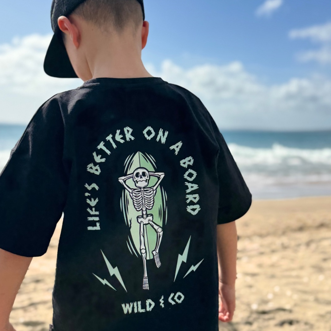 Life's better on a board! The perfect Tee for the beach this summer - Available in sizes 2-14yrs! 100% cotton with dropped shoulders for comfort and style.